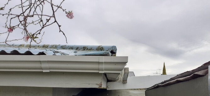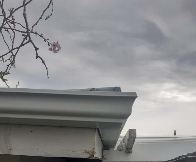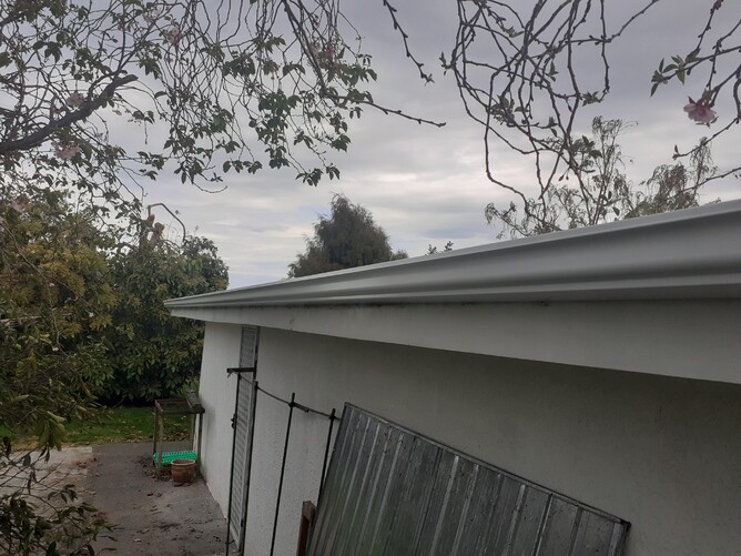 This brittle and leaking PVC spouting was replaced with our Old Gothic Threadbow White COLORSTEEL® continuous spouting.